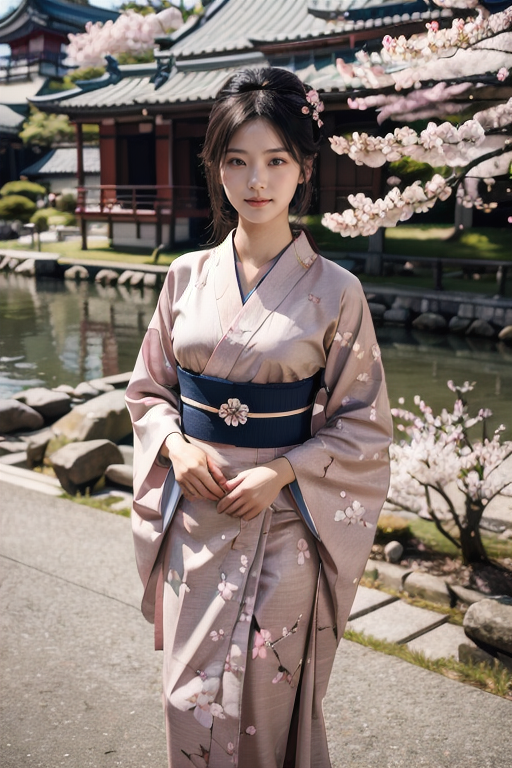 일본 여행에서 기모노 입고 사진 찍는 여친 – Ai 그림 룩북