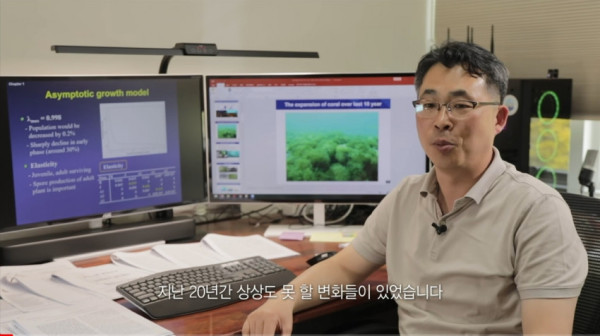 감태가 점점 없어지고 아열대 산호인 거품돌산호가 덮는중