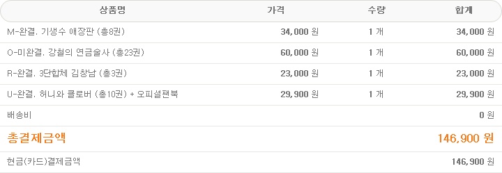 그래서 원어데이 BUY 버튼을 클릭해 만화책 세트를 4개나 질렀습니다.