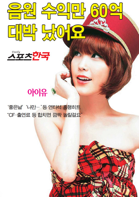 단순한 음원 매출 산수이긴 하지만 여기에 행사비, 기타 등등을 모두 합치면 100억원이 넘는 매출이라고 하니, 순수입을 고려한다고 하더라도 올해 말에 지은이 부모님이 만질 돈이 어느정도일지 상상도 가질 않네요. 게다가 그룹이 아닌 솔로이기 때문에 독식하는 것이니 여성 아이돌 최고의 수익을 올리는 것일지도 모르겠습니다. ^^