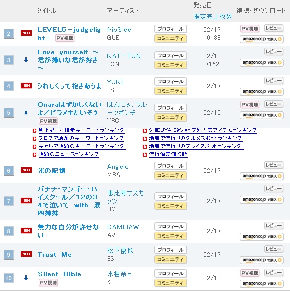 오리콘 싱글 데일리 랭킹 1위가 정말 대단한 것은 맞긴 하지만 2위와 별반 차이없는 판매량이라면 이렇게 포스팅할 이유도 없겠죠.